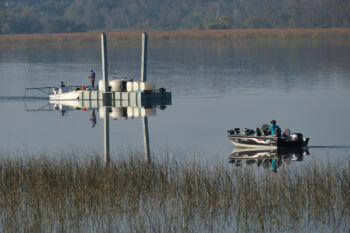 Long-term benefits follow as the alum binds algae-feeding phosphorus to the lake bottom, preventing it from re-entering the main body of water during lake turnover or other turbulence.